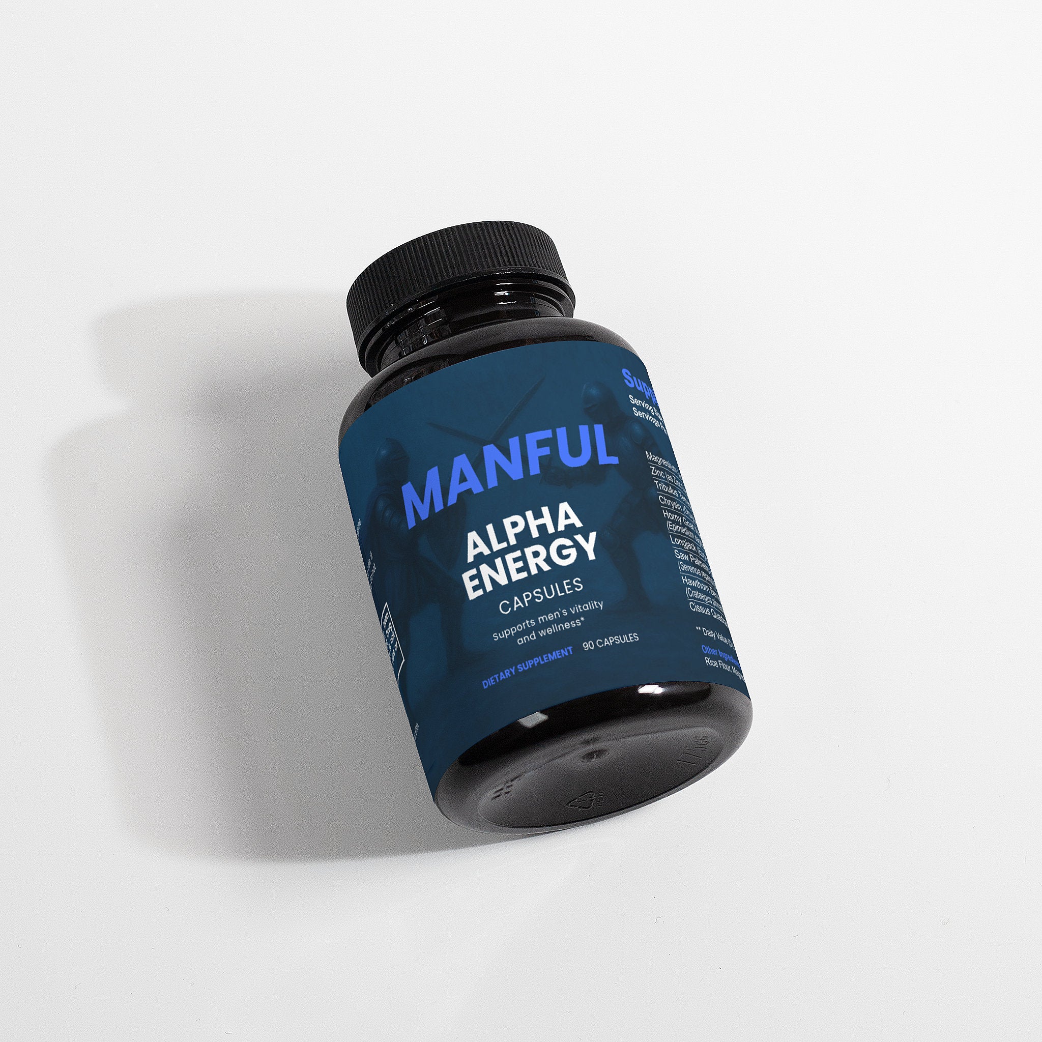 Support Men's Vitality and Wellness: Our carefully crafted dietary supplement is designed to promote men's health and well-being without containing testosterone. Formulated with a blend of key nutrients including magnesium, zinc, tribulus terrestris, chysin, horny goat weed, longjack, saw palmetto berries, hawthorn berries, and cissus quadrangularis, our product supports various aspects of men's health. *